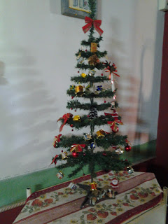 Faltando apenas 40 dias para o Natal não tem mais como disfarçar: o Natal está no ar! E o "espírito do Natal" está no meu quarto também, representado pela árvore enfeitada com meus bordados.